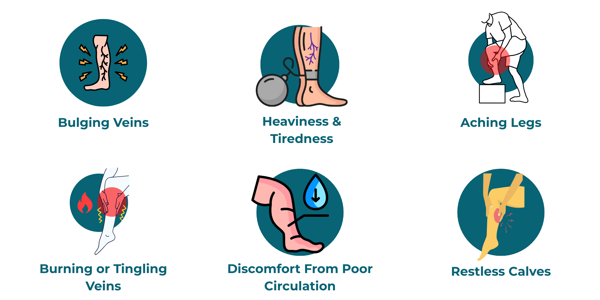 Each application targets the real drivers of varicose veins: poor circulation, weakened vein walls, tissue stress, and heaviness.