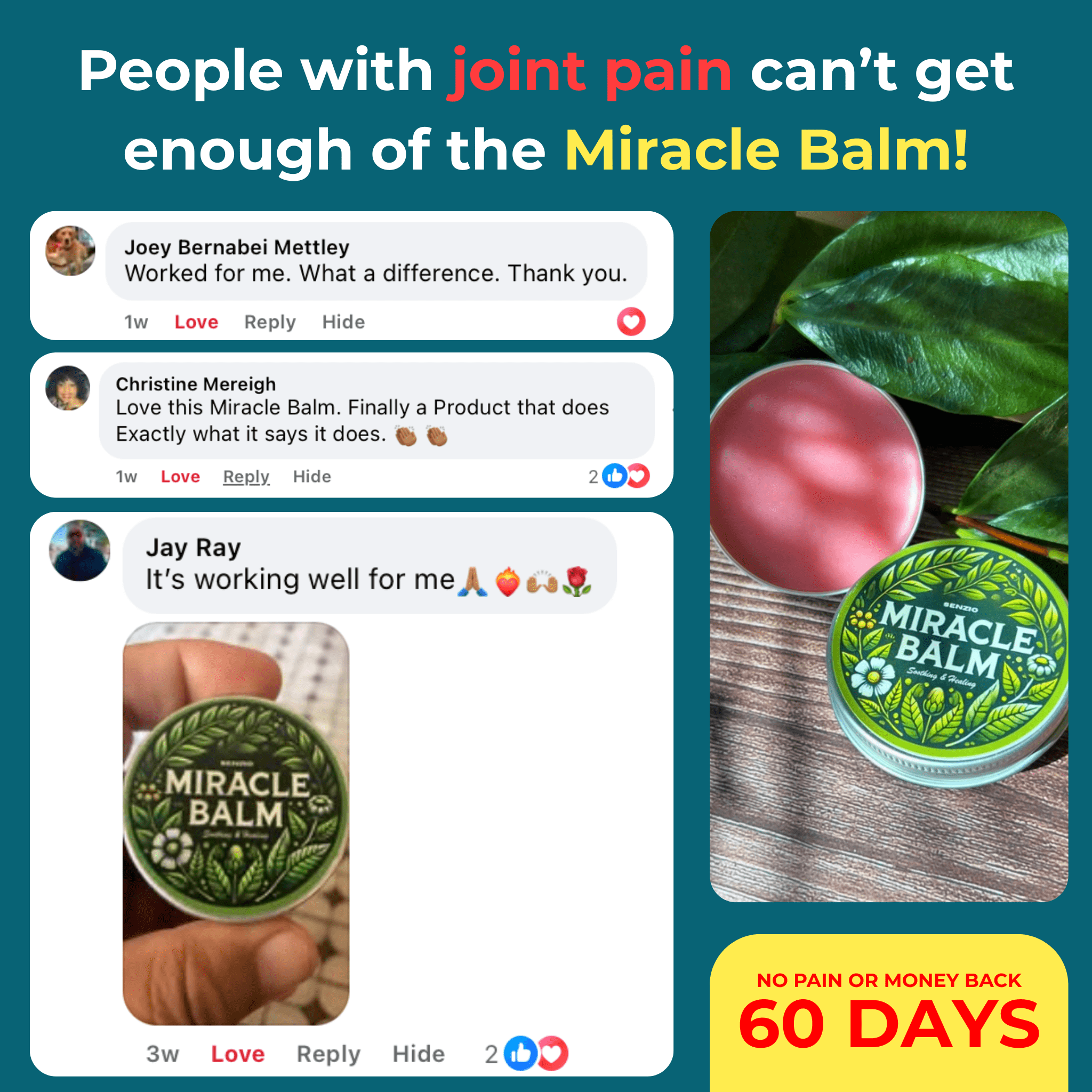 "I was skeptical but decided to give Miracle Balm a try after realizing I had nothing to lose and everything to gain. And I'm so glad I did because the pain relief is faster and better than anything I've ever tried!